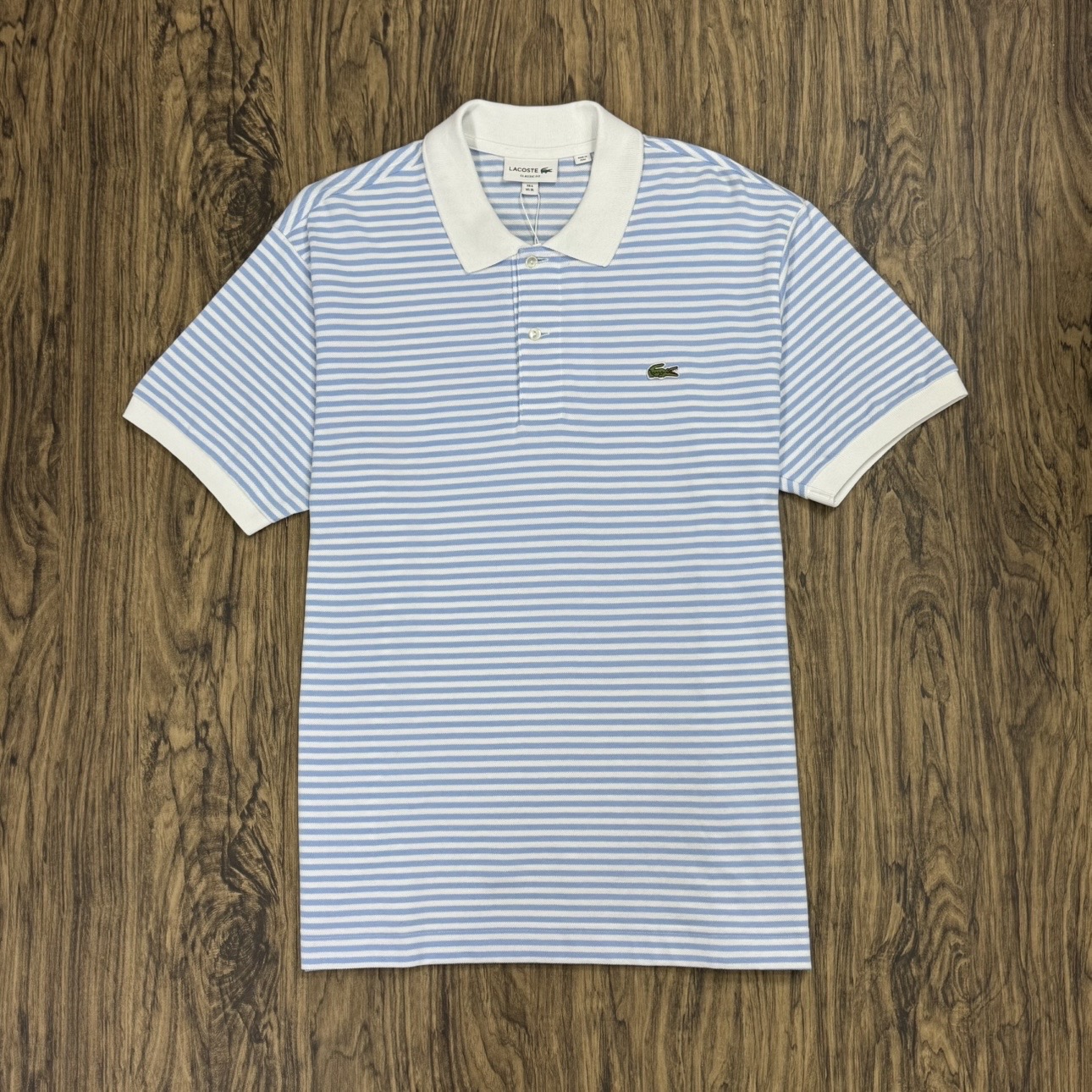 Polo Lacoste Listrada Azul com Branco PH9753